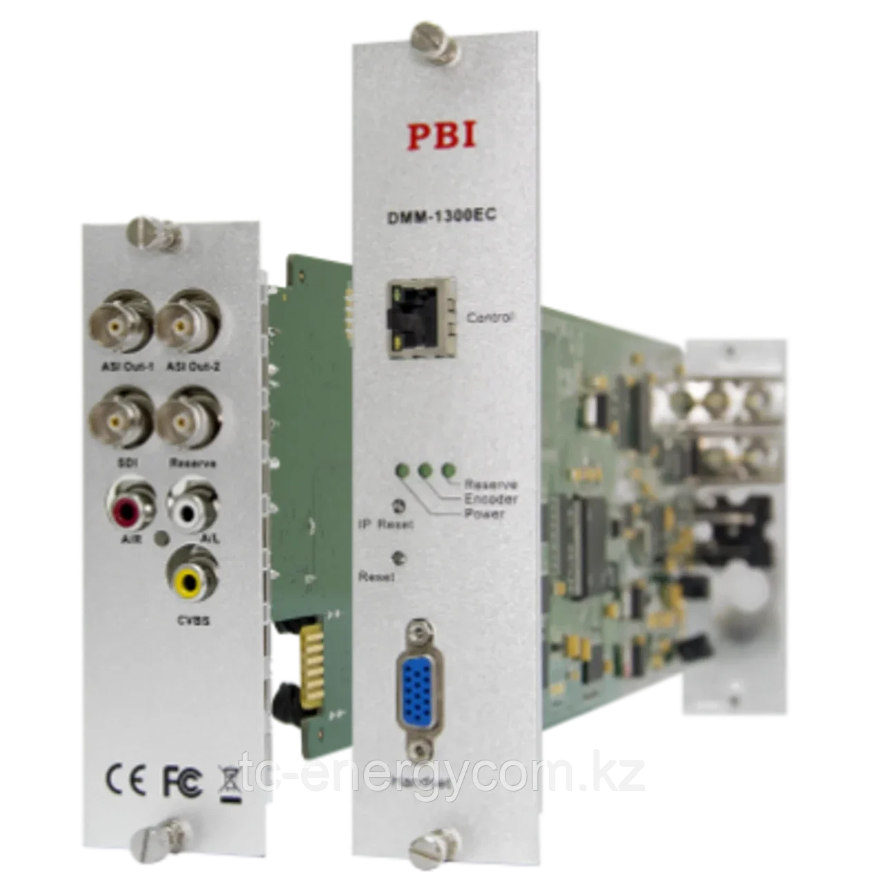 Модуль кодера DMM-1300EC-30 позволяет энкодировать одну программу с разрешением изображения SD кодеком MPEG-2. Входной видеосигнал можно подать на аналоговый вход CVBS либо на цифровой вход SD-SDI, входной аудиосигнал можно подать на разъём RCA. Энкодированный сигнал можно вывести через порты ASI. Устройство поддерживает редактирование таблиц SDT и NIT. Управление модулем осуществляется через порт Ethernet либо с помощью специального устройства управления.